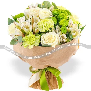 Мохито - букет из белых роз и альстромерии