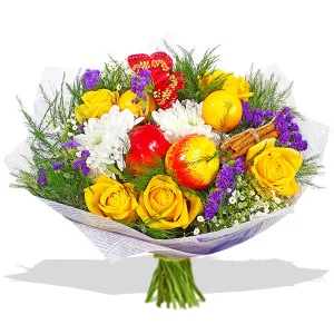 Букет оранжевых роз + хризантемы - Осенний коктейль