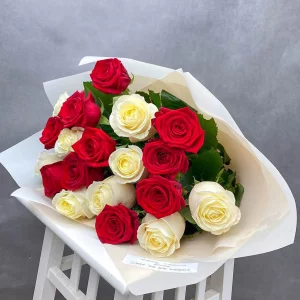 Аромат нежности – букет из белых и розовых роз (50-60 см)